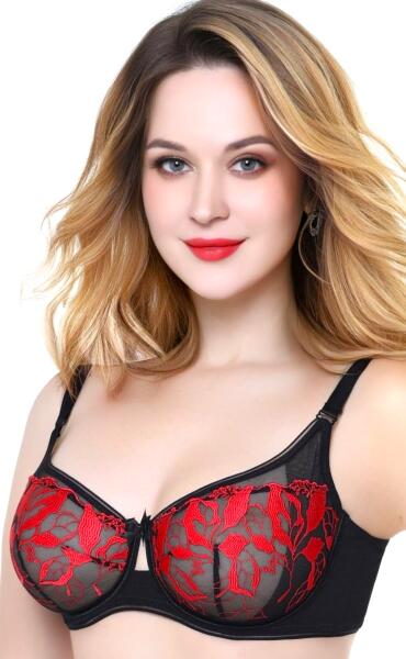 Lanny Mode Merevítő nélküli, hímzett melltartó Lanny Mode Carla, fekete/piros 80EALLEGRO